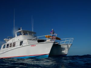 An exciting start to Trip 6, we were able to observe a small pod of pantropical spotted dolphins, Stenella attenuata, in the Gulf Stream, on our way over to the Bahamas. Although this species has spots like our study dolphins, Atlantic spotted dolphins, Stenella frontalis, the pantropical spotted dolphin is more closely related to other oceanic dolphins like the spinner dolphin, Stenella longirostris. Both species are tropical dolphins, live in large schools, and spend most of their time in the deep ocean. We know little about the natural behavior of pantropical spotted dolphins, due to their largely oceanic nature, but sadly the species has been studied over the decades due to the tuna industry practice of surrounding these dolphins to gather the large tuna underneath the pod. Most of the data collected consists of body size and reproductive conditions, since thousands of dolphins have been necropsied after death.
