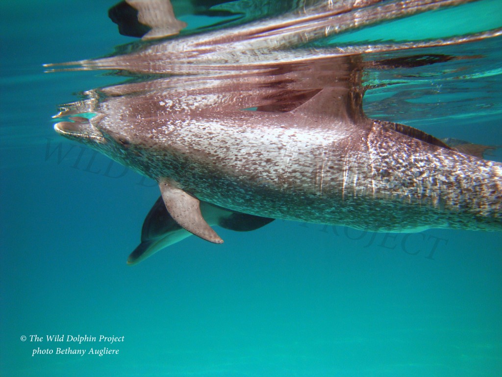 A lot can happen over the winter and we are ready to document those changes. There were 11 pregnant females last year, including a young female named Burgundy. If Burgundy’s calf survived the winter it will be the first recorded 4th generation spotted dolphin of The Wild Dolphin Project. Denise first encountered Burgundy’s grandmother, Paint, as a juvenile dolphin in 1985. She has known Paint for over 30 years! Paint gave birth to Brush in 1990 and Brush had Burgundy in 2000. Female dolphins typically become sexually mature around 10 years of age, or the “mottled” color phase.